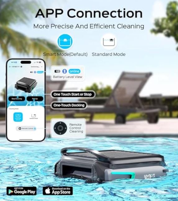 - WYBOT App & Manual Switch Mode – 2 cleaning modes.