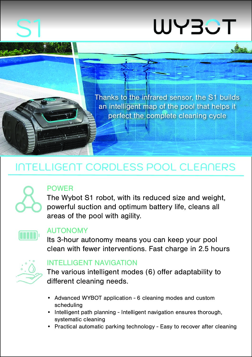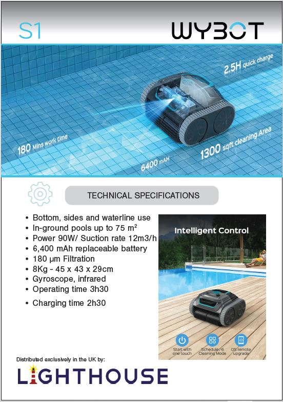 - WYBOT App & Manual Switch Mode – 6 cleaning modes and custom scheduling.